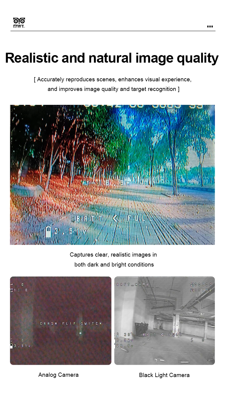 مصممة لأنظمة FPV التناظرية التي تتطلب مخرج CVBS وأداء موثوق في النهار والليل، مناسبة للطيران في المشاهد الساطعة والمضيئة ومنخفضة الإضاءة.