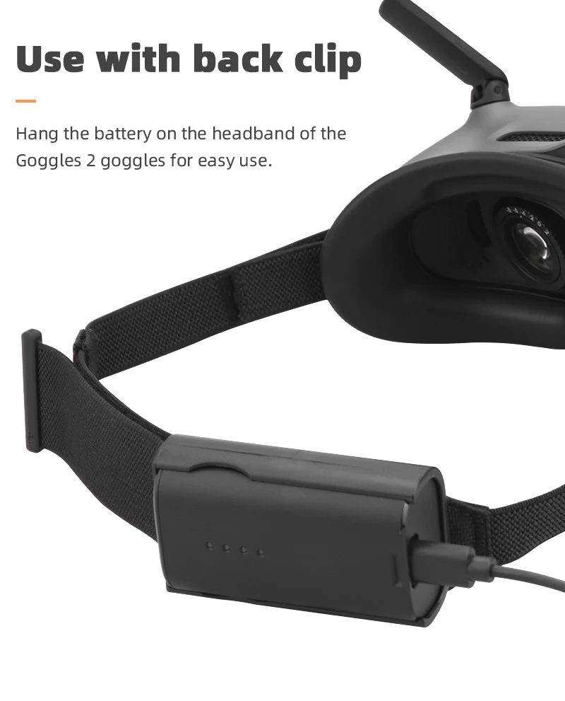 4. عند استخدامها مع المشبك الخلفي ، يمكن تعليق البطارية على عصابة الرأس الخاصة بنظارات Goggles 2 ، وهي ملائمة للاستخدام ،