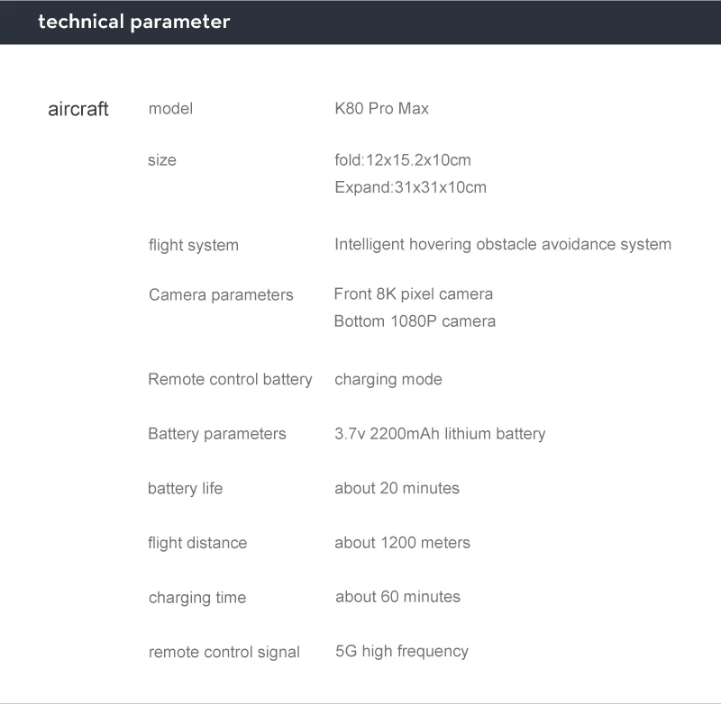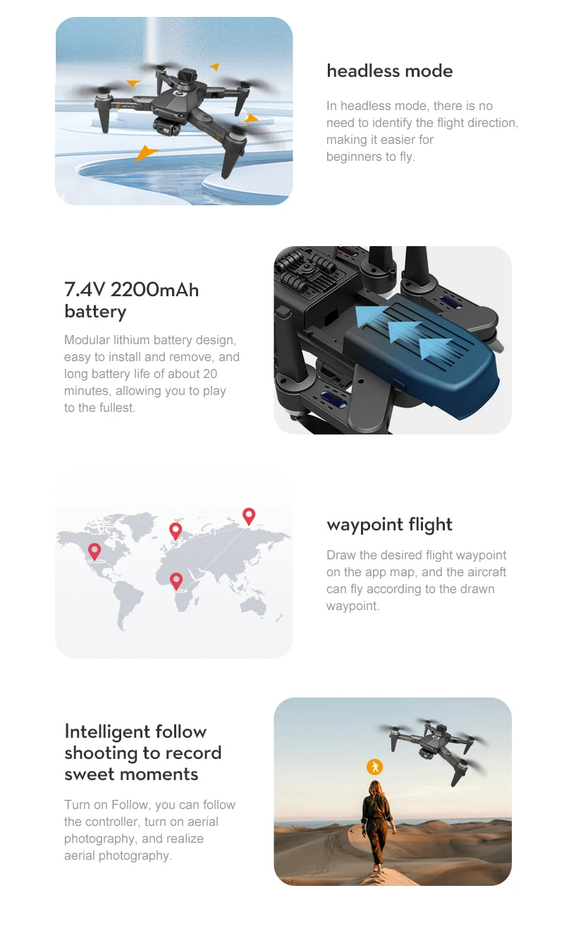 اللون : أسود / برتقالي / رمادي وقت الشحن : 90min نوع تركيب الكاميرا اسم العلامة التجارية : XYRC الكاميرا السفلية : صورة 1080P (1920Px1280P) / فيديو 720P (1280Px720P) التصوير الجوي : نعم صورة 5G WIFI مسافة الإرسال : حوالي 600 متر (بدون بيئة تداخل)