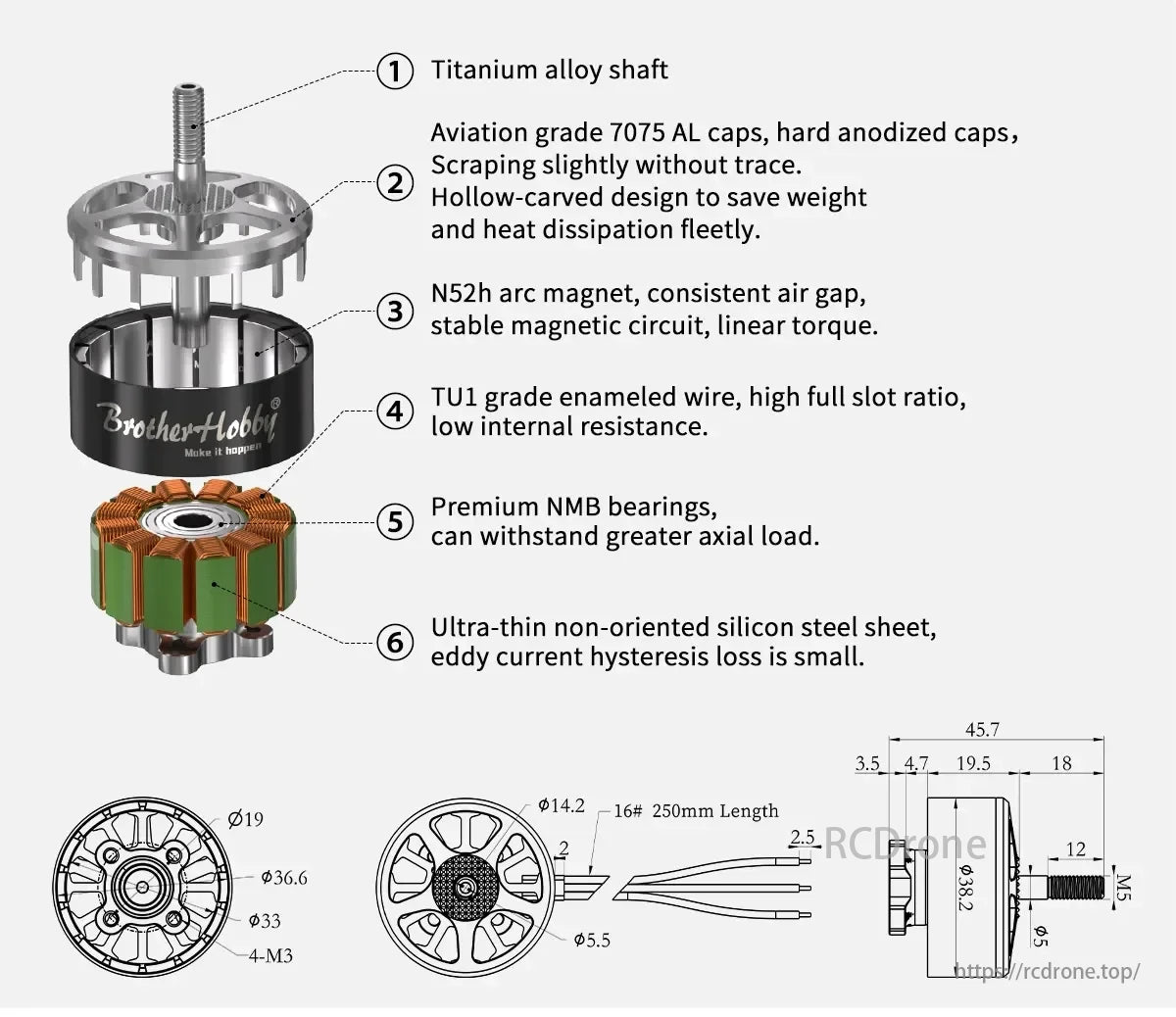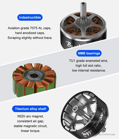 দক্ষ কর্মক্ষমতার জন্য ব্রাদারহবি এসই ভি৪ মোটরে রয়েছে টাইটানিয়াম শ্যাফ্ট, এন৫২এইচ চুম্বক, টিইউ১ তার, প্রিমিয়াম বিয়ারিং এবং পাতলা সিলিকন স্টিল শীট।