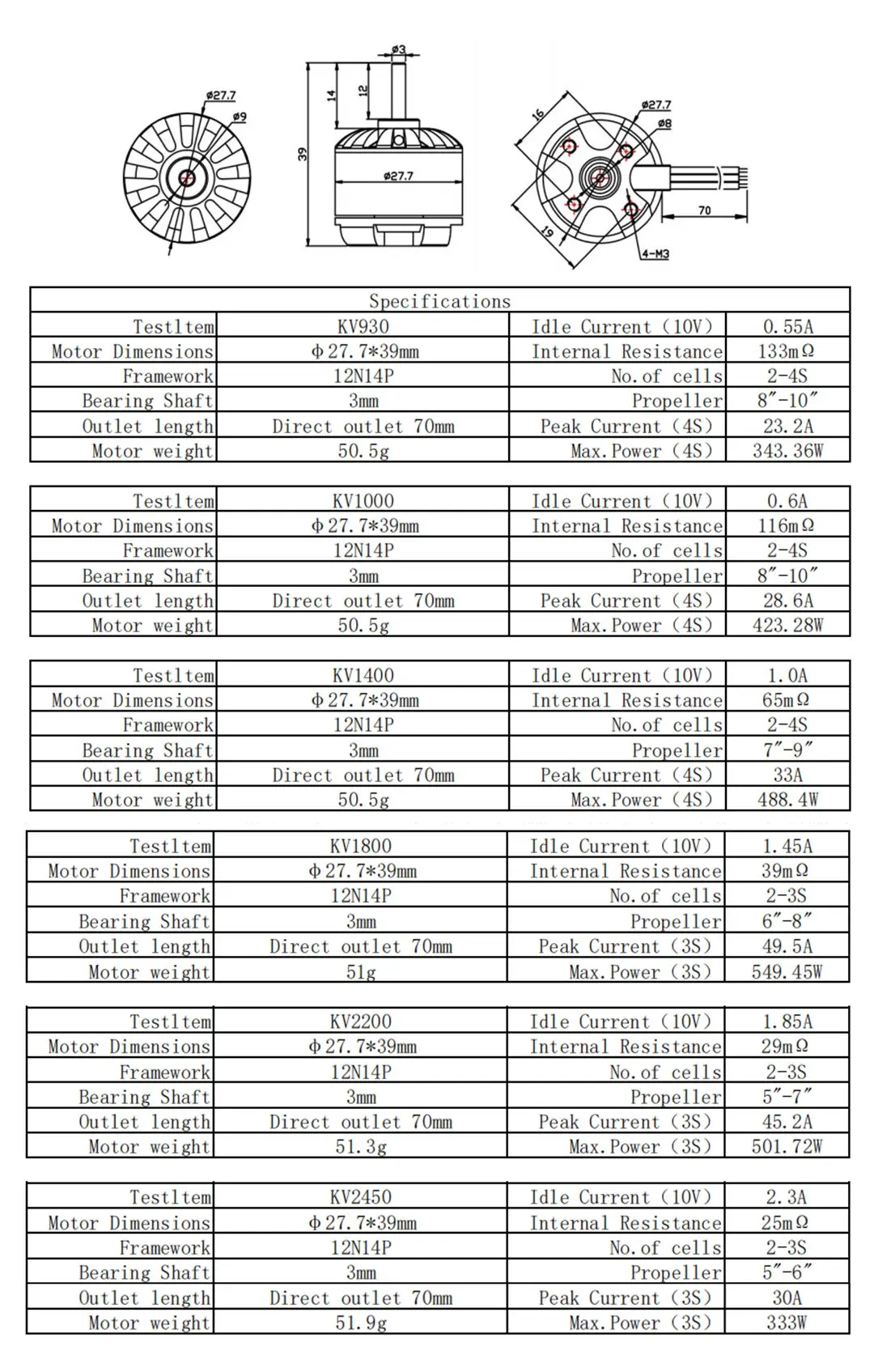 আরসি এয়ারপ্লেন এফপিভি রেসিং ড্রোনের জন্য Emax GTII-2212C ব্রাশলেস মোটর - 1000kv 1400kv 2450kv