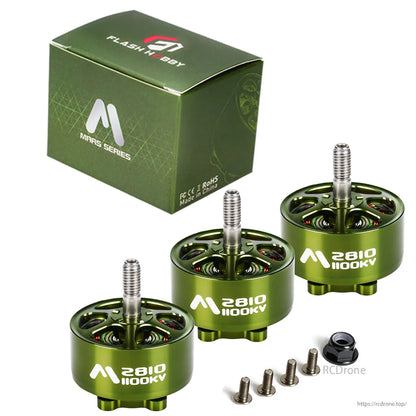 ফ্ল্যাশহবি মার্স M2810 1100KV 3-6S ব্রাশলেস মোটর, সবুজ প্যাকেজিং, তিনটি ইউনিট।