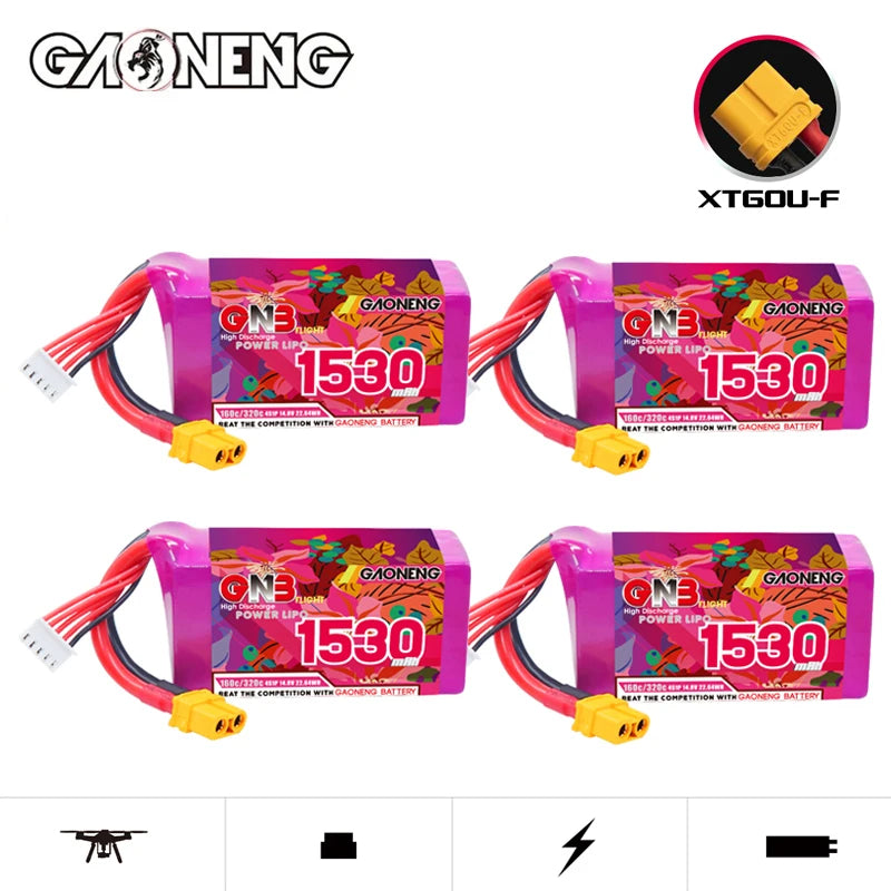 RC FPV ড্রোনের জন্য GNB 4S 14.8V 1530mAh 160C/320C LiPo ব্যাটারি, উচ্চ ডিসচার্জ পাওয়ার, নতুন প্রজন্মের ব্যাটারি!
