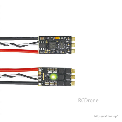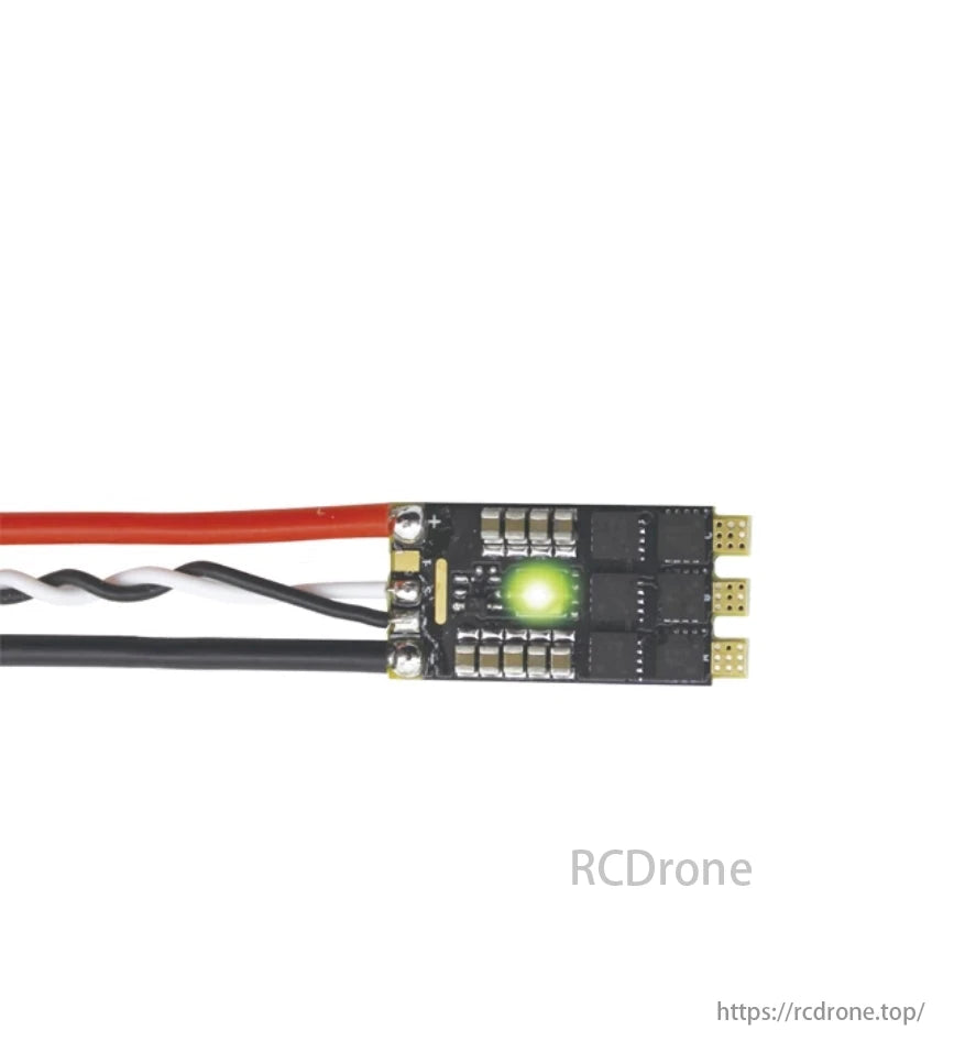 একটি মোটা 3OZ সোনালী-প্লেটেড PCB এবং স্বাধীন হাফ-ব্রিজ ড্রাইভার সহ Toshiba N-চ্যানেল MOSFETs দিয়ে নির্মিত, এটি নির্ভরযোগ্য কারেন্ট পরিচালনা (35A অবিচলিত) এবং সুপারিয়র তাপ অপচয় প্রদান করে। ESC-টি একটি কাস্টমাইজযোগ্য RGB LED-র সাথে সজ্জিত, যা ব্যবহারকারীদের ফার্মওয়্যার মাধ্যমে আলোর রঙগুলি স্বাধীনভাবে নির্বাচন করার অনুমতি দেয়।