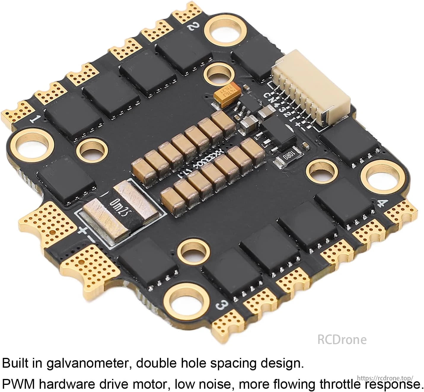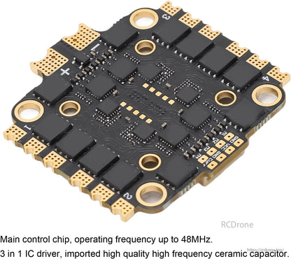 উচ্চ সংহতি: একটি কমপ্যাক্ট বোর্ডে 4x 45A ESCs একত্রিত করে যা অন্তর্নির্মিত কারেন্ট সেন্সর এবং উন্নত SMT উপাদানগুলির সাথে।