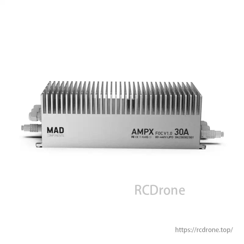AMPX 30A ESC-তে রয়েছে প্রিমিয়াম উপকরণ, শক্তিশালী নকশা এবং ভালো তাপ অপচয়। এটি IGBT থ্রি-ফেজ ফুল ব্রিজ ইনভার্টার টপোলজি ব্যবহার করে যার সর্বোচ্চ আউটপুট কারেন্ট 75A। সেন্সর-লেস FOC প্রযুক্তি দক্ষ নিয়ন্ত্রণ নিশ্চিত করে। স্পেসিফিকেশনের মধ্যে রয়েছে ইনপুট ভোল্টেজ DC80V-440V, তাৎক্ষণিক কারেন্ট 30A, ব্যাটারি সেকশন 100S এবং কাজের দক্ষতা ≥98%।