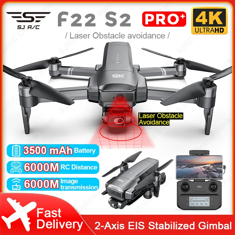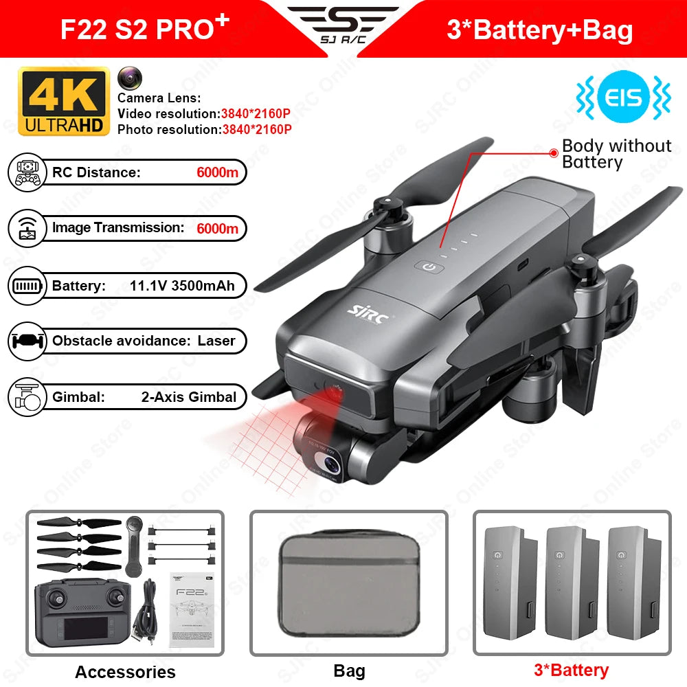 প্রবর্তন করা হচ্ছে SJRC F22 S2 Pro+ ড্রোন, 6km পর্যন্ত রেঞ্জ, 4K HD ক্যামেরা, এবং বাধা এড়ানোর GPS এর জন্য একটি রিয়েল-টাইম ম্যাপিং সিস্টেম দিয়ে সজ্জিত। ড্রোনটি রিয়েল-টাইমে স্পষ্ট ডিজিটাল গ্রাফিক্স এবং ছবি প্রেরণ করে, অত্যাশ্চর্য বায়বীয় দৃশ্যগুলি ক্যাপচার করার জন্য উপযুক্ত৷