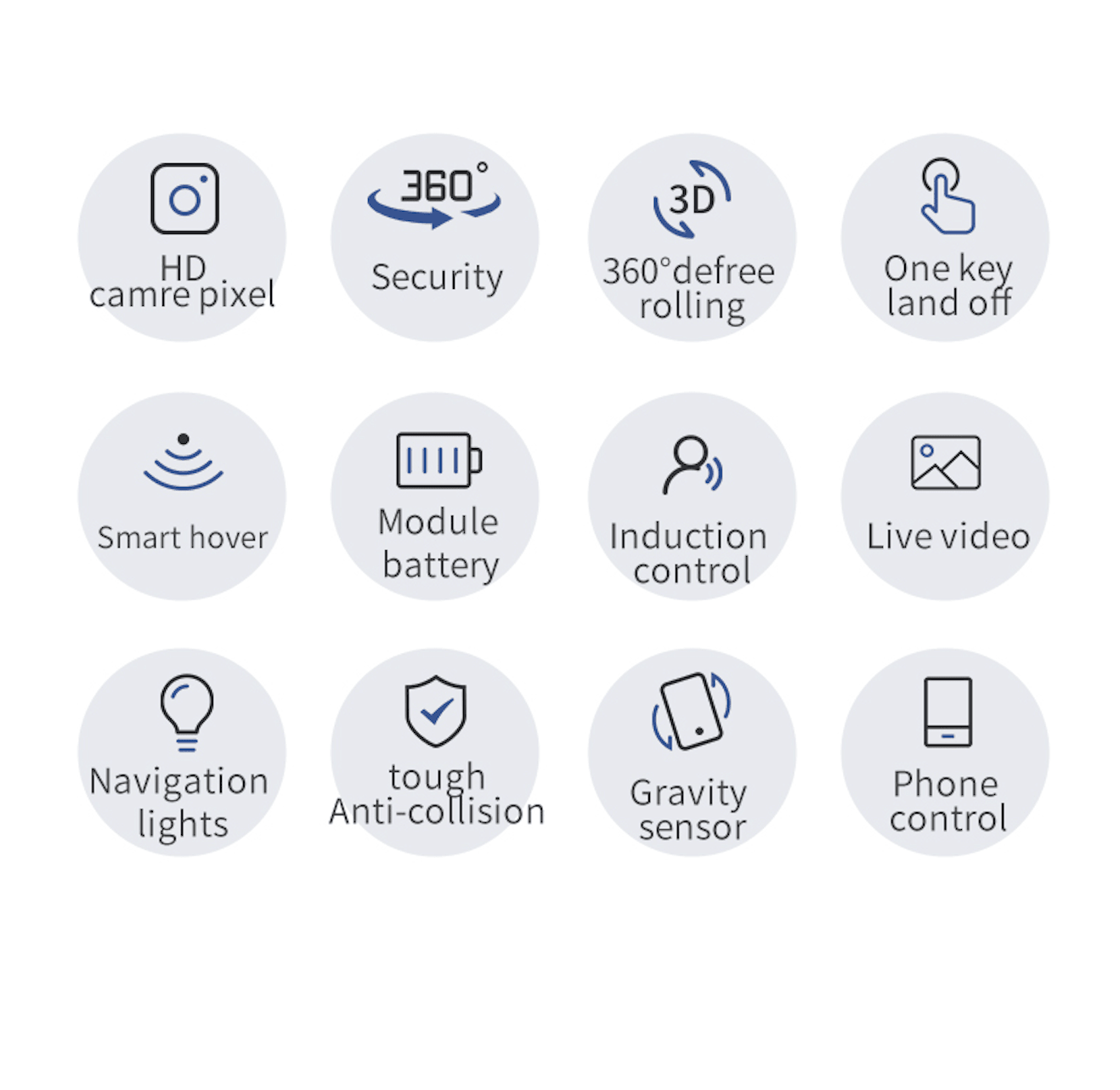 عملکردها: بالا / پایین، جلو / عقب، گردش به چپ / راست، پرواز جانبی، چراغ LED، حالت بدون سر، بازگشت خودکار با یک دکمه، حالت نگه داشتن ارتفاع، WiFi FPV
