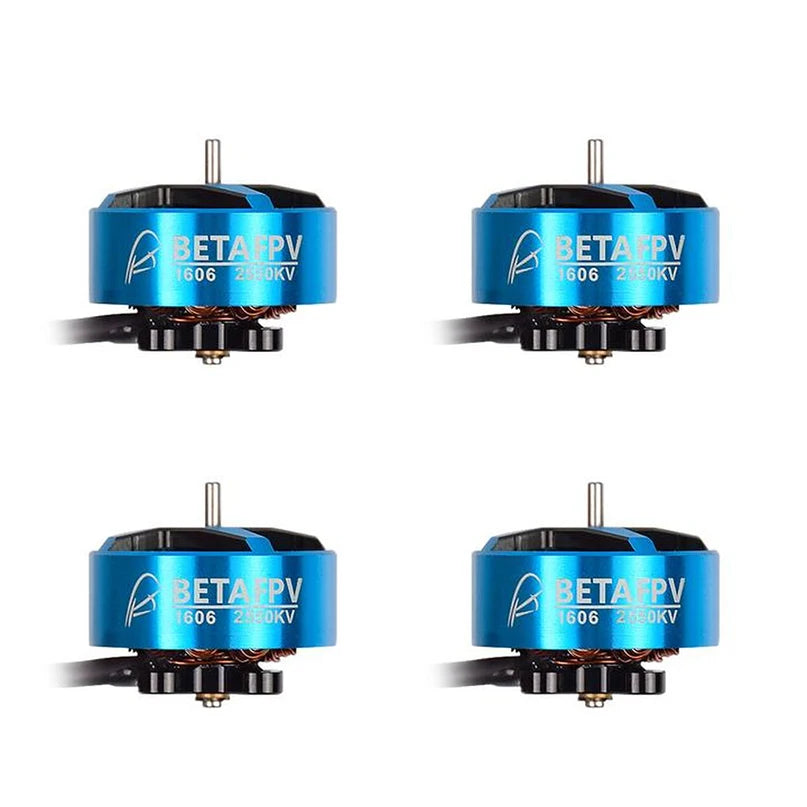موتورهای براشلس BETAFPV 1606 2550KV طرح آبی چهار واحد نمایش داده شده است.