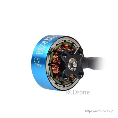ابعاد موتور BETAFPV 1805 / 1606 براشلس: سیم 100 میلی متر، بدنه 21.6 میلی متر، شفت 3.8 میلی متر.