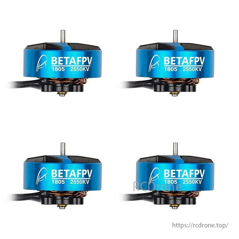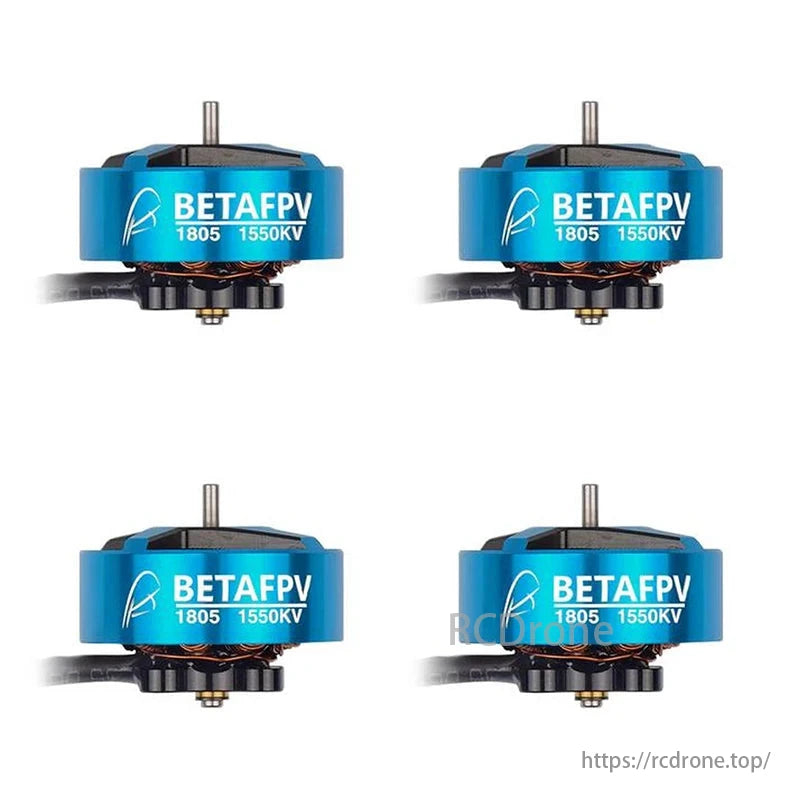 موتورهای براشلس 1550KV BETAFPV 1606 طرح آبی چهار واحد نمایش داده شده است.