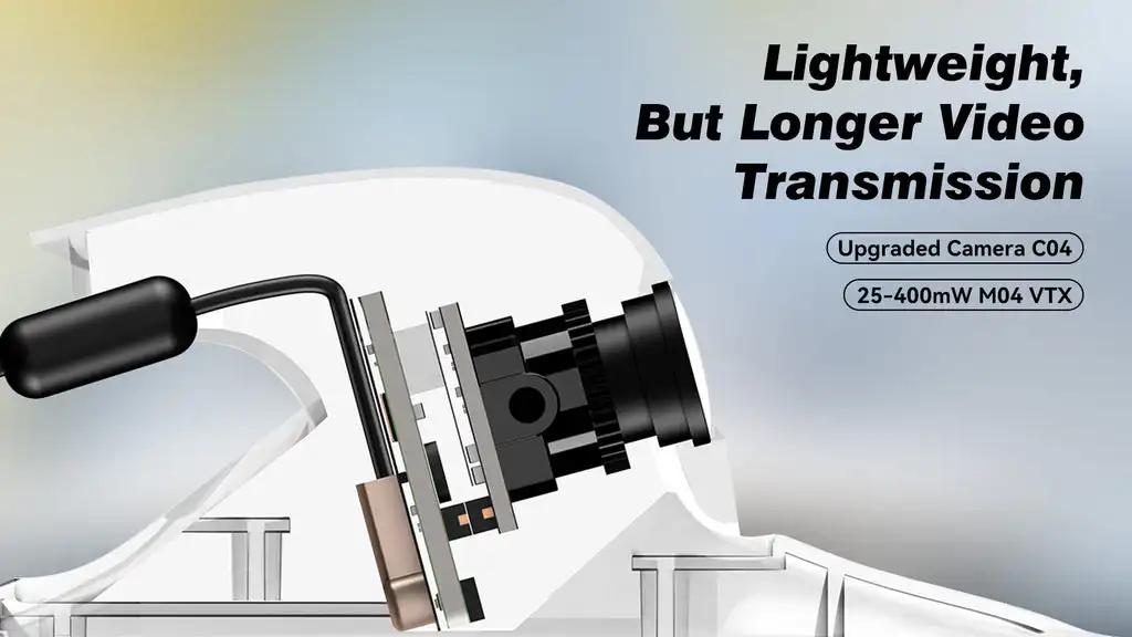 کوادکوپتر براشلس Cetus X دارای دوربین M04 25-400 میلیواتی VTX و C04 FPV است. M04 25-450mW VTX دارای قدرت خروجی سبک و قابل تنظیم برای پرواز در مسافت های طولانی تر است. ترکیب این VTX و پیوند رادیویی عالی ExpressLRS 2. 4G، خلبانها میتوانند هواپیماهای بدون سرنشین را طولانیتر به پرواز درآورند تا امکانات بیشتری را کشف کنند و از آن لذت ببرند. علاوه بر این، دوربین C04 FPV (بر اساس Caddx Nano Ant Camera/Runcam Nano 4) کیفیت بهتری را در پرواز FPV در مقایسه با دوربین C02 FPV نشان میدهد.