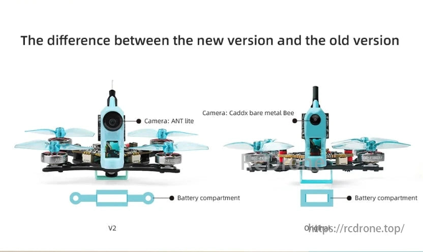 V2 در مقابل Original: دوربین ANT lite در مقابل Caddx، محل قرارگیری باتری.