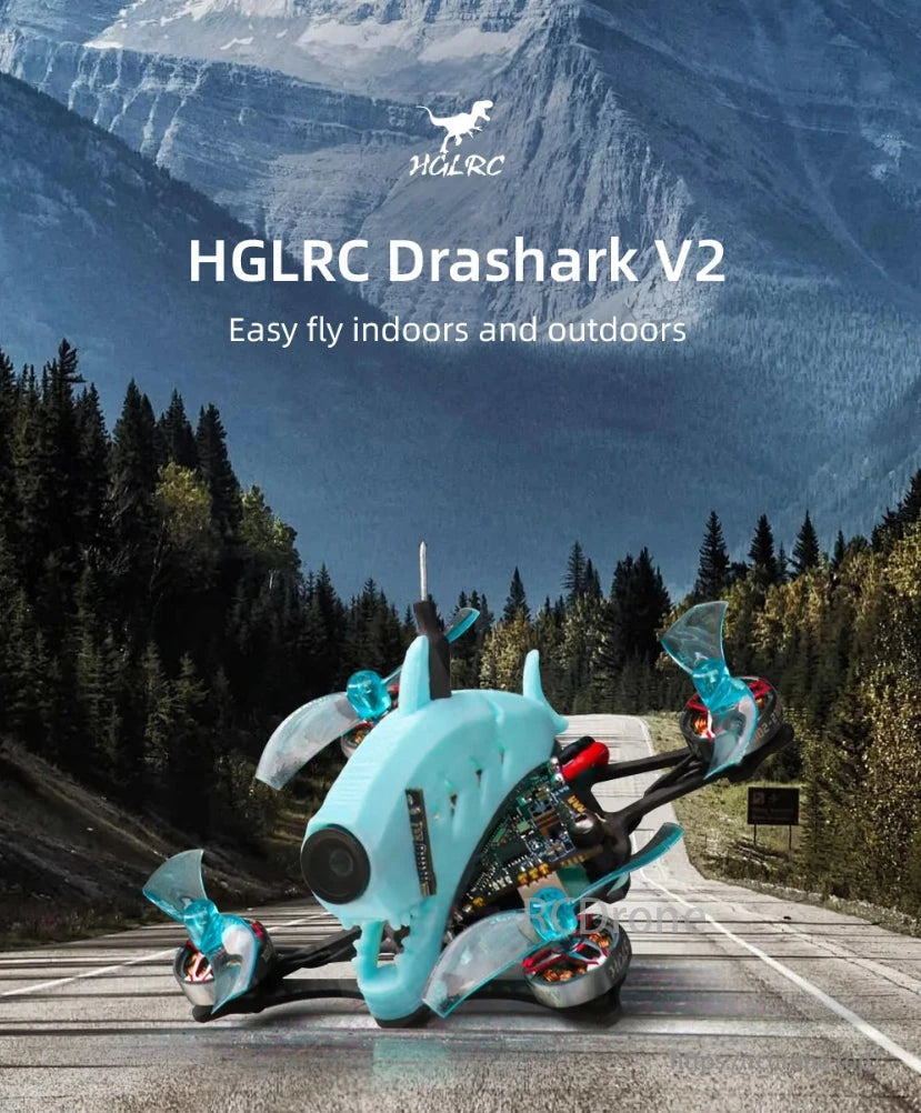 HGLRC Drashark V2: پرواز آسان در داخل و خارج از منزل. پهپاد FPV 1.6 اینچی 1S Toothpick با طراحی شیک.