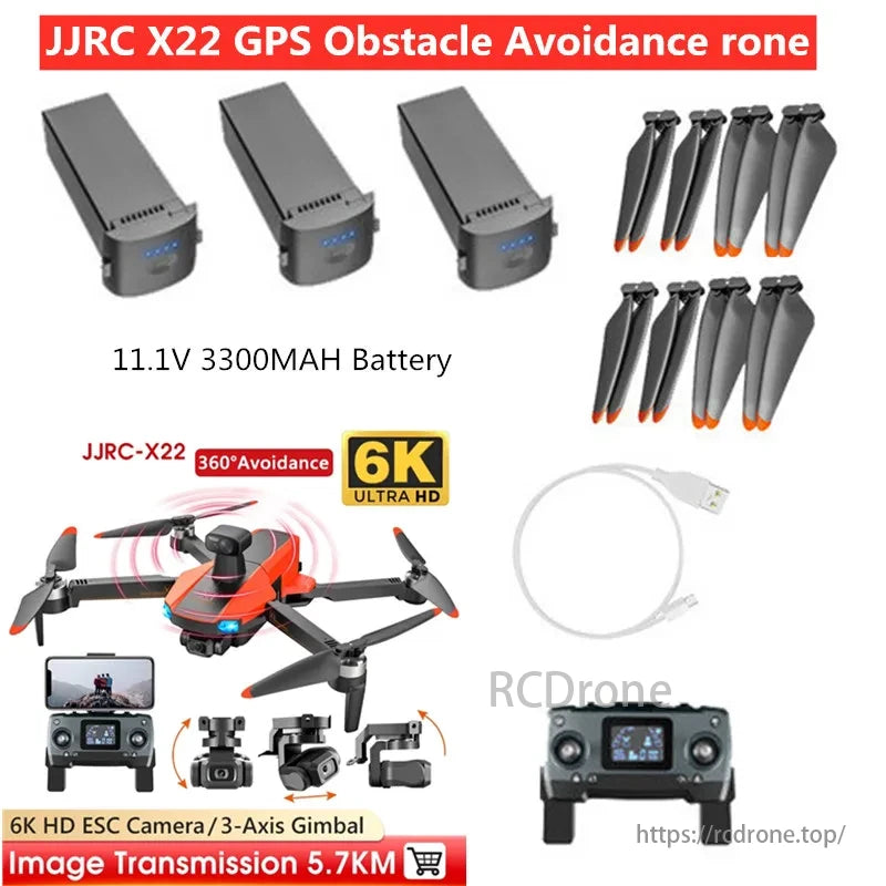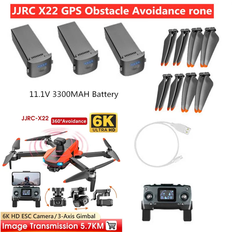 پهپاد JJRC X22 با باتری های 11.1 ولت 3300 میلی آمپر ساعتی، ملخ ها، دوربین 6K، اجتناب از موانع 360 درجه و انتقال 5.7 کیلومتر.