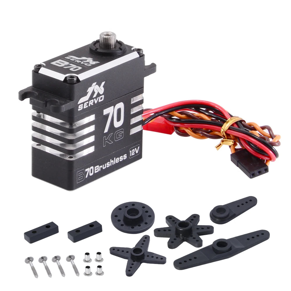 JX Servo B70: سروو موتور با کیفیت بالا و تمام فلزی براشلس با گشتاور 72 کیلوگرم (159 پوند)، مناسب برای استفاده در هواپیماهای RC صنعتی، خودروها و پهپادهایی که نیاز به کنترل دقیق و عملکرد بالا دارند. عملیات.