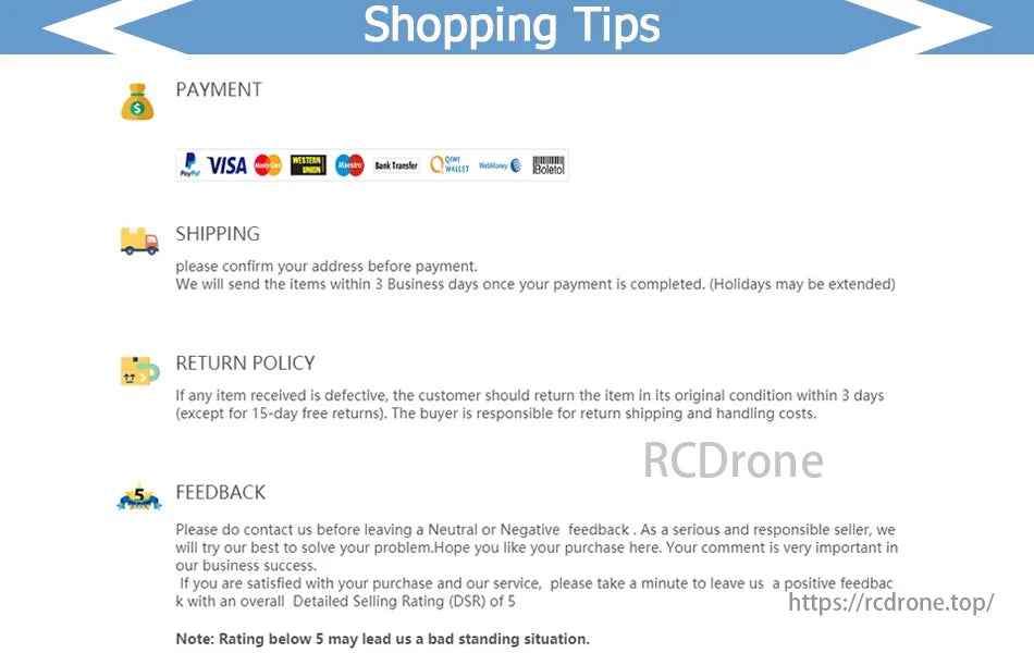لطفاً برای توضیحات، ارتباطات و سرعت ارسال، در Aliexpress رتبه 5 ستاره بگذارید. بازخورد شما مهم است!