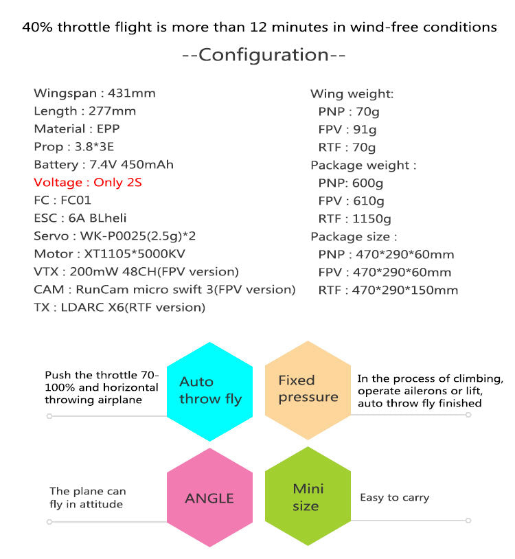 باتری: 7.4 ولت 450 میلی آمپر ساعت (توصیه می شود، شامل نمی شود)