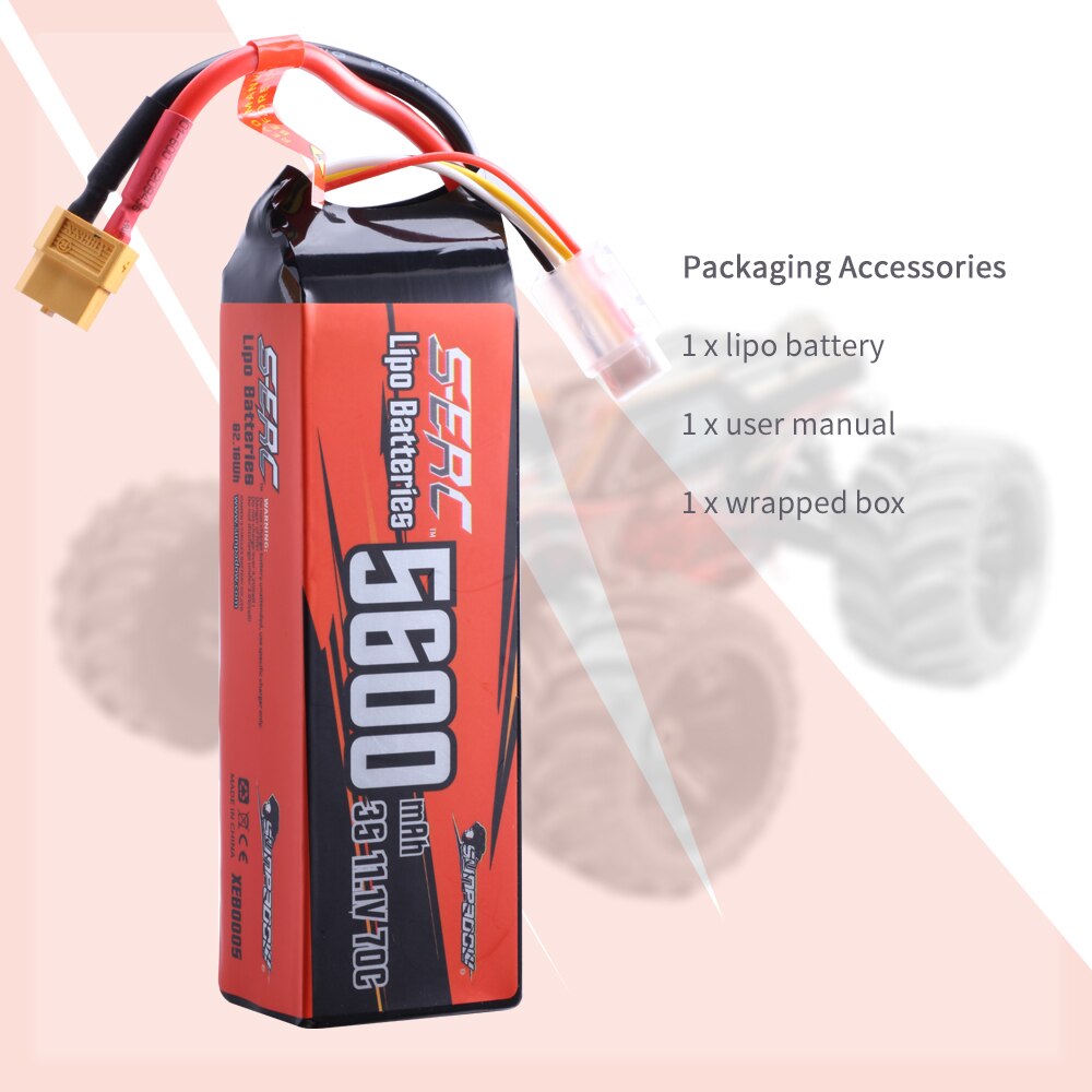 SUNPADOW 3S Lipo Battery 11.1V 5600mAh 7100mAh 70C with XT60 Plug Specifications