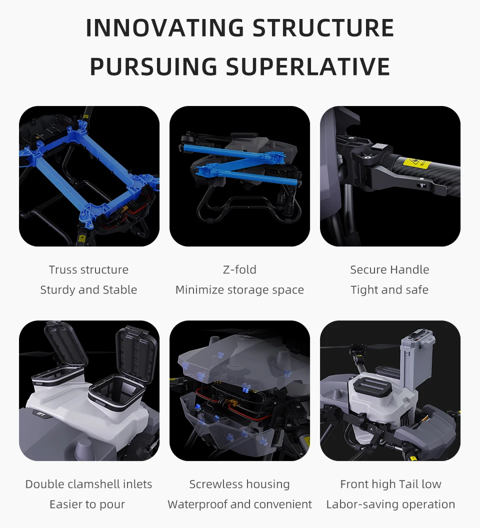 Le cadre du drone agricole EFT Z30/Z50 adopte une nouvelle structure en treillis avec une meilleure résistance et durabilité.