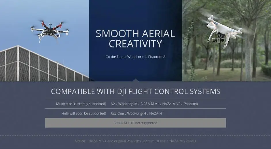 सूचना: NAZA-M V1 और मूल फैंटम उपयोगकर्ताओं को NAZA-M V2 PMU का उपयोग करना चाहिए