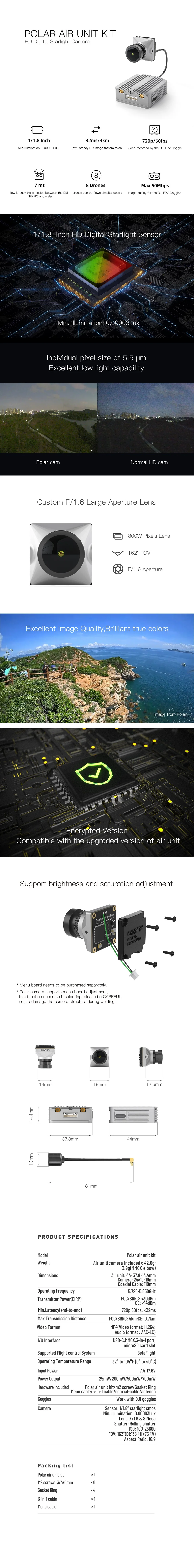 CADDX Air Unit Polar Kit Starlight Digital HD FPV System Utilizza il modulo originale DJI FPV Air Unit 720p / 60fps 800W Pixel Lens