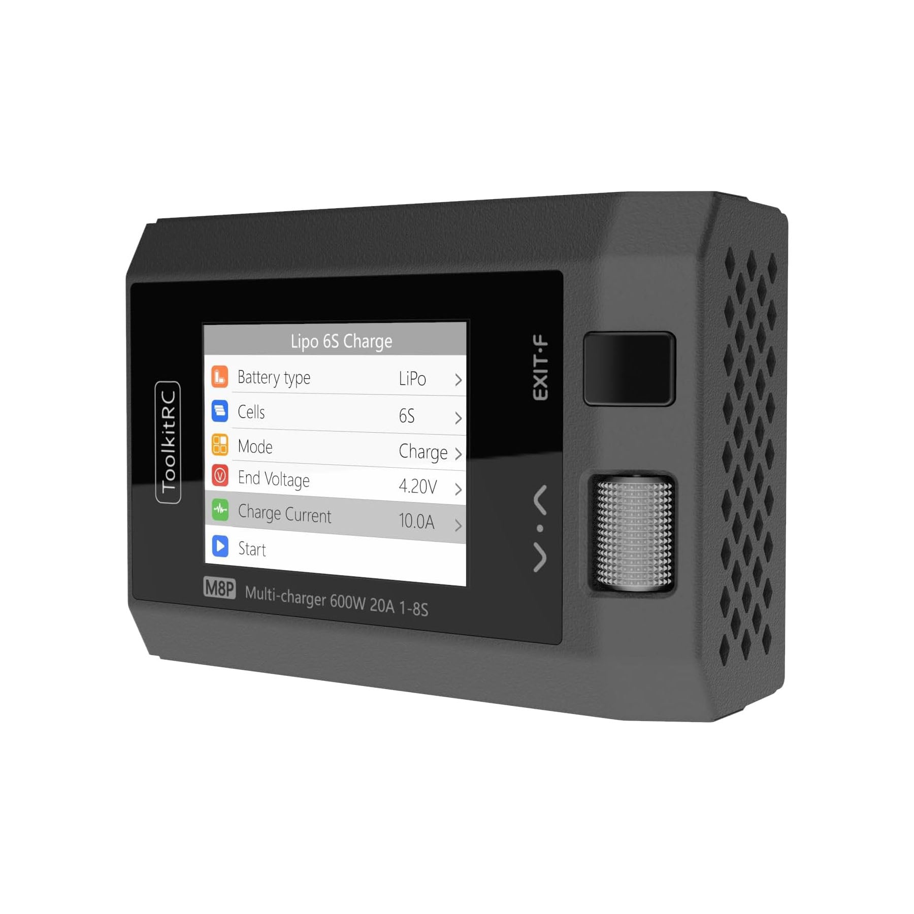 Nuovo design: prestazioni migliorate, maggiore potenza e precisione di bilanciamento. Potenza aggiornata O.OOSV con un aumento del 50% in M8S e M8P ToolkitRC. Caricamento rapido: 1,5 ore per una carica completa al 100%.