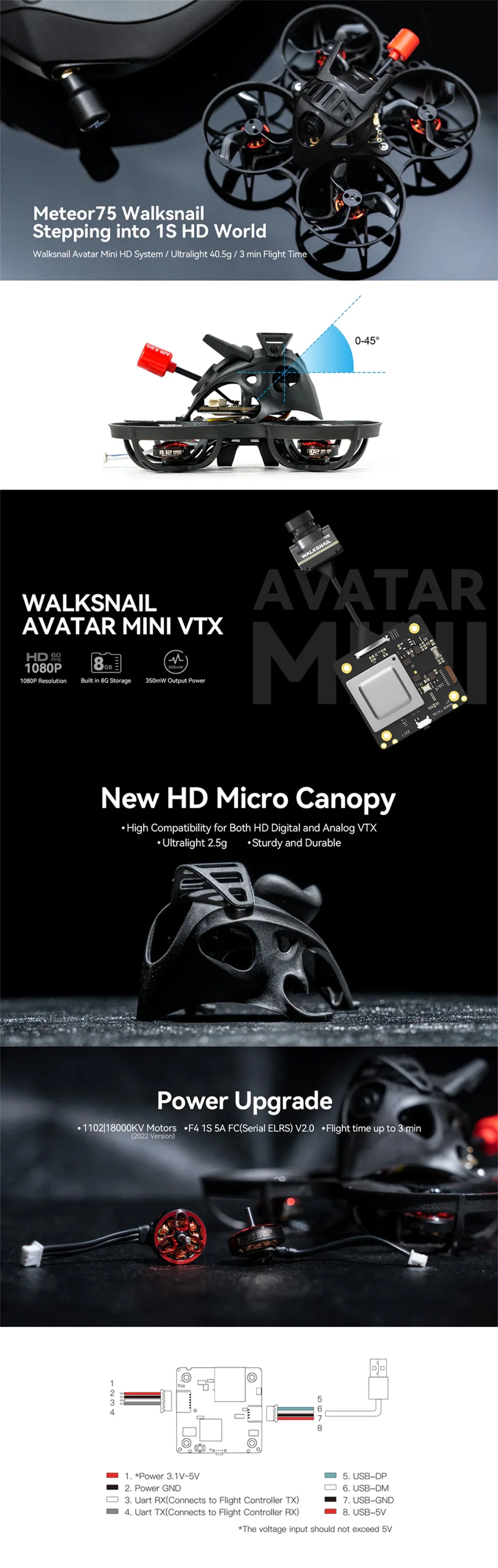 遠隔距離: 3分 リモコン: はい 推奨年齢: 12+y 電源: 電気 パッケージ内容: USBケーブル パッケージ内容: 充電器 パッケージ内容: 取扱説明書 パッケージ内容: バッテリー パッケージ内容: オリジナルボックス 原産地: 中国本土 オペレーターのスキルレベル: 初級者 オペレーターのスキルレベル: 中級者 モーター: ブラシレスモーター モデル番号: Meteor75 素材: カーボンファイバー 屋内/屋外での使用: 屋外 飛行時間 機能: アプリ制御 コントローラーモード: MODE2 コントローラーバッテリー: 2 制御チャンネル: 2チャンネル バーコード: いいえ 航空写真: はい 説明: この商品について BetaFPV は、この 1S フープ クワッドコプターで HD の世界に足を踏み入れています!従来の Meteor75 ブラシレス フープ クワッドコプターには、Walksnail Avatar Mini HD VTX が付属しており、際立った画像と優れたビジュアルを目に映し、フライトと同じくらいエキサイティングな映像を作る詳細をキャプチャします。強力な推進力を特徴とする 1102 個の 18000KV モーターと合わせて、パイロットにパワフルで印象的な結果をもたらします。臨場感あふれる飛行体験を楽しみ、新しい HD VTX システムで屋内でも屋外でも完璧なショットを撮影してください。 F4 1S 5A FC (シリアル ELRS 2.4G) V2.0 は、Betaflight フライト コントローラ ファームウェアをフラッシュせずに ELRS V3.0 に個別にアップグレードできます Walksnail HD VTX と組み合わせた強力な推進機能により、パイロットは没入型の飛行体験とインパクトのあるビジュアルを得ることができます BT2.0 コネクタは内部コネクタ抵抗を効果的に低減し、優れた導電性能を実現 40mm 3 ブレード プロペラとアップグレードされた 1102 18000KV モーターを装備 40.5gの超軽量 仕様: FC & ESC: F4 1S 5A FC (シリアル ELRS 2.4G) V2.0/F4 1S 5A FC (SPI Frsky) V3.0 アイテム: Meteor75 ブラシレス フープ クアドコプター (1S HD デジタル VTX) プロペラ: 40mm 3 ブレード プロペラ (1.5mm シャフト) フレーム: Meteor75 マイクロ ブラシレス フープ フレーム 受信機: シリアル ELRS 2.4G/TBS Crossfire カメラ: Walksnail アバター ナノ カメラ バッテリー: BT2.0 450mAh 1S 30C バッテリー VTX: 1S Walksnail Avatar Mini HD VTX カメラ調整角度: 0~45° バッテリーなしの重量: 40.5g モーター: 1102 18000KV モーター VTX 電力出力: 350mW 飛行時間: 3 分 重要事項: この BMI270 ジャイロメーターをサポートするのは、最新の Betaflight ファームウェア 4.3.1 のみです。以下のリンクを確認して、ファームウェアと CLI ダンプ ファイルをダウンロードしてください。 Betaflight 公式サイトから 4.3.1 ファームウェアを更新する場合は、Meteor75 HD の CLI ダンプ ファイルをフラッシュしてください。 ELRS バージョンは外部 RX をサポートしていません。 以下を含む: 1x BetaFPV Meteor75 1S ブラシレス Whoop HD、Walksnail Avatar Mini VTX 付き 2x 450mAh 1S 30C バッテリー、BT2 付き。0 コネクタ 1x BT20 バッテリー充電器と電圧テスター 4x 40mm 3 ブレード プロペラ (1.5mm シャフト) 1x Walksnail VTX USB ケーブル 1x Type-C USB ケーブル 1x スクリュードライバー