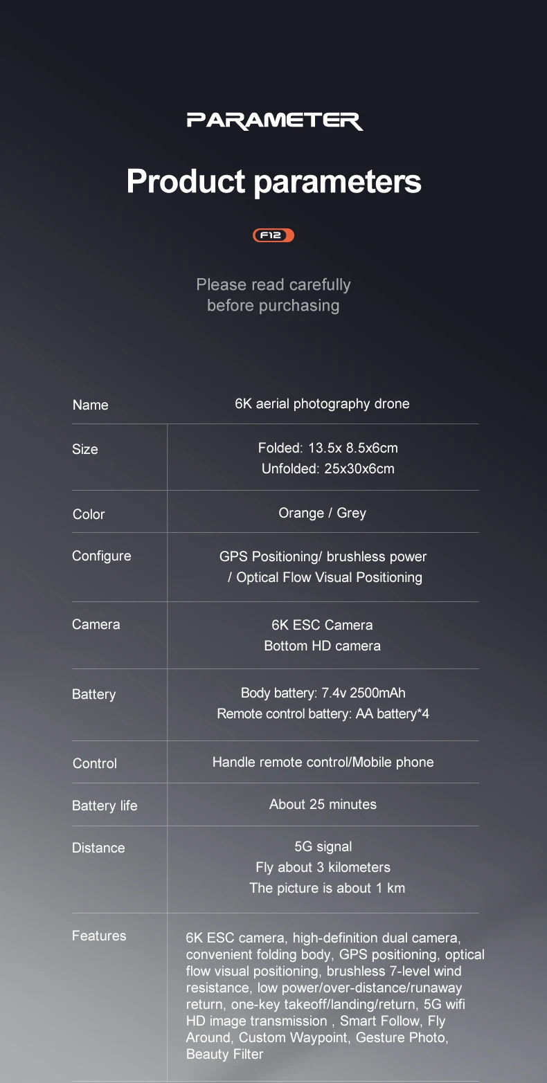 製品名: F12 ブラシレス GPS フォールディング ドローン
