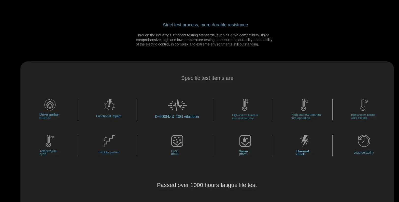 湿度サイクル、熱衝撃、防水、防塵、過電流ストレス