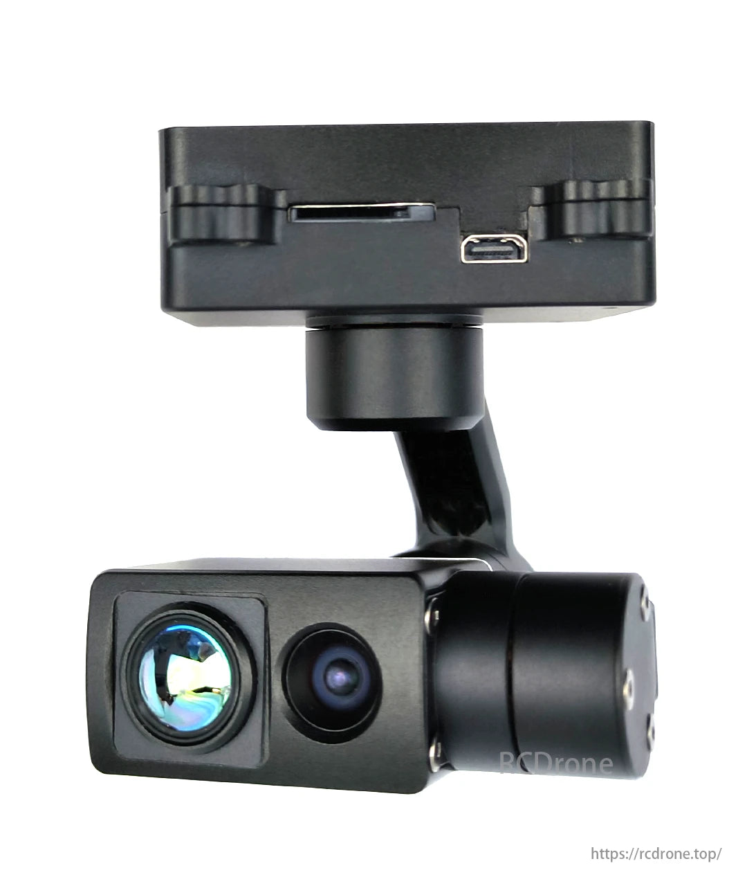 TOPOTEK KHP335M608 は、固定焦点の可視光カメラ、焦点距離 8.7 mm の 640x512 サーマル カメラ、高精度のプロフェッショナル向け 3 軸安定化 PTZ を統合した固定焦点デュアルライト ドローン ジンバルです。ネットワークIPとHDMIのデュアル出力をサポートします。このジンバルは、高い安定性、小型、軽量、低消費電力が特徴です。可視光カメラには有効画素数400万画素のCMOSセンサーを採用し、熱画像には解像度640×512の酸化バナジウム検出器を採用。このシステムは、ネットワーク RTSP ストリーム出力、ピクチャ イン ピクチャ スイッチ、複数の疑似カラー ディスプレイ、およびグローバル温度測定機能をサポートしています。シリアル ポートとネットワークの両方でカメラと PTZ を制御でき、ローカル TF 双方向ビデオ録画と写真撮影をサポートします。