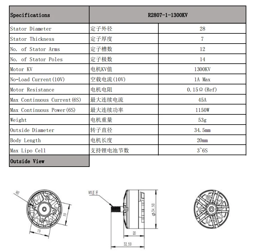 이 고성능 2806.5 / 2807 1300KV 무브러시 모터 장거리 및 프리스타일 FPV 드론 제작을 위해 설계되었으며, APEX, Mark4, XL7과 같은 7인치(295mm)에서 8인치(360mm) 프레임에 최적화되었습니다. 28mm 스테이터 직경과 7mm 스테이터 두께를 갖춘 이 모터는 6S 출력 구성에서 강력한 출력과 부드러운 비행 특성을 제공합니다.