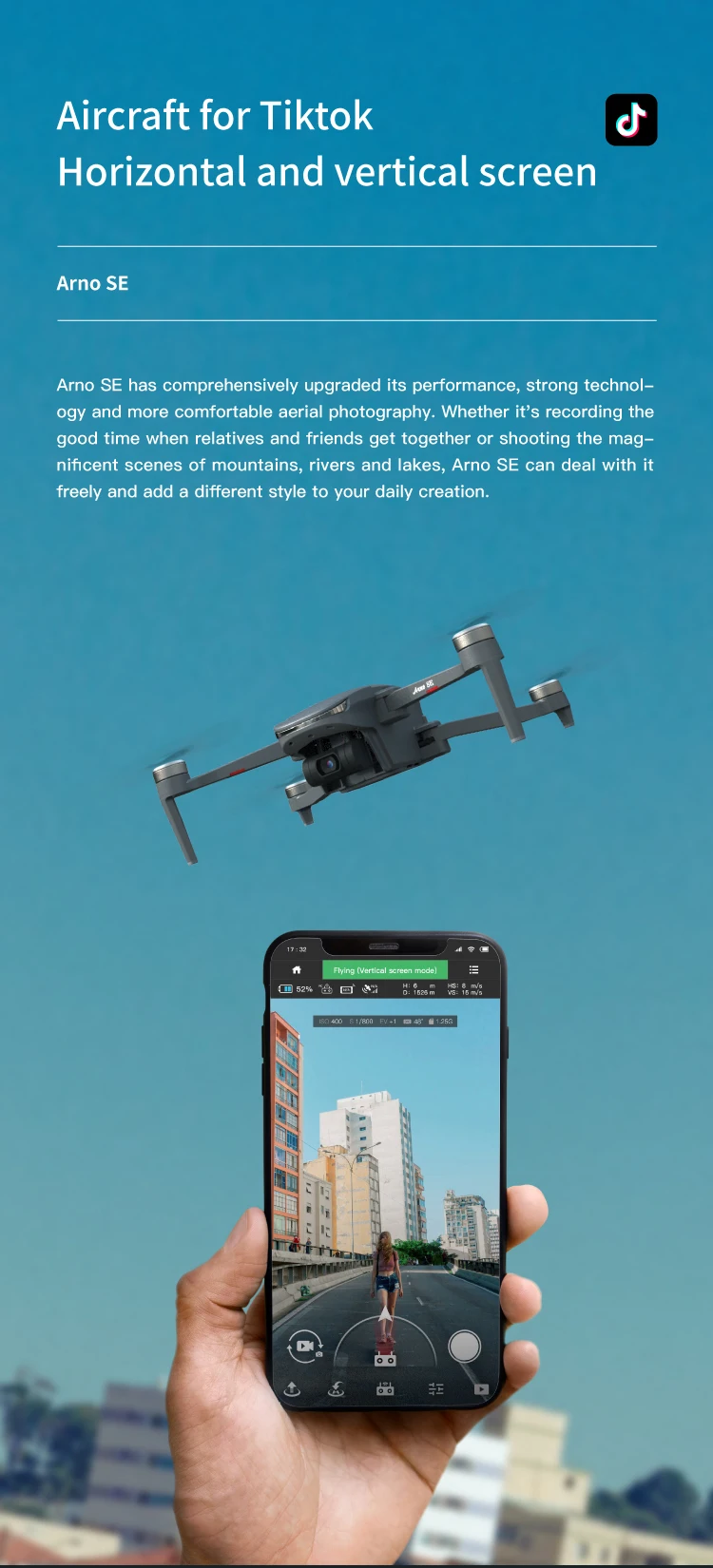 11 ) Mod Mengikut Satu Kunci. Dalam mod, dron akan terbang mengikut pemain untuk merakam detik indah