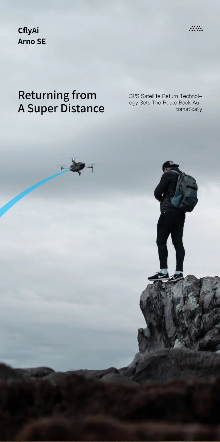 9 ) Satu Kekunci Berlepas /Mendarat. Satu tekan secara automatik berlepas atau mendarat, dron akan berlepas atau kembali ke kedudukan di mana ia berlepas dan ia sangat sesuai untuk operasi orang baru.