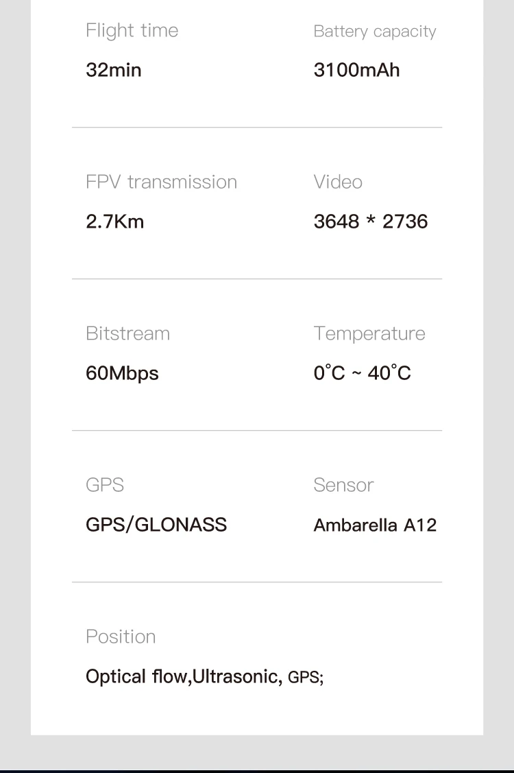 12 ) Dengan 11. Bateri 4V 3100mAh, masa terbang sehingga 32 minit.
