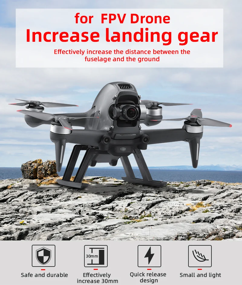 2. Verhoog effectief de hoogte met 30 mm, waardoor effectief wordt voorkomen dat grondresten de romp vervuilen of de gimbal en camera beschadigen tijdens het opstijgen en landen,