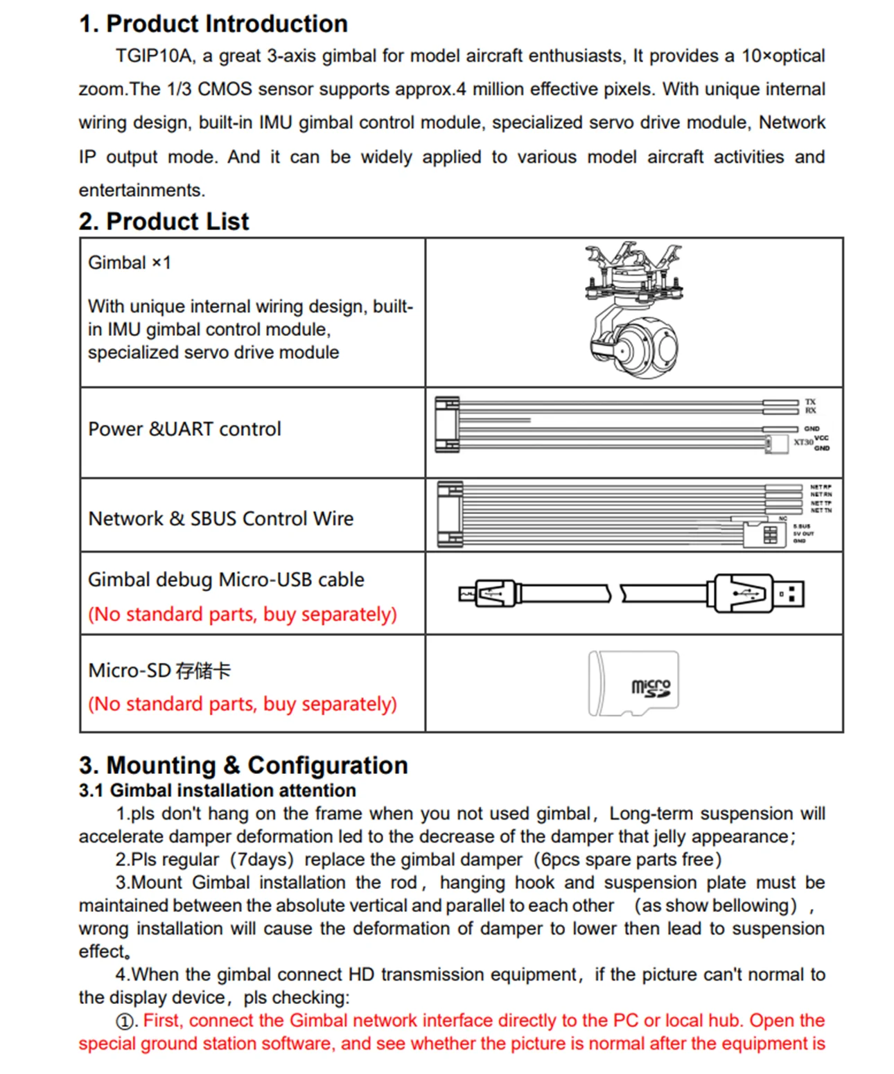 Topotek TGIP10A Drone PTZ-camera 10xOptische zoom 3-assige stabiliteit 1080P RTSP Videostream-uitgang Gimbal Camera UART SBUS-besturing