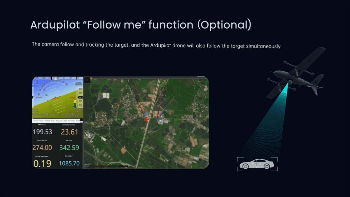 - Compatibiliteit van vluchtcontroller: Ondersteunt ArduPilot en PX4 met Mavlink-protocol; optionele Follow Me-functie.