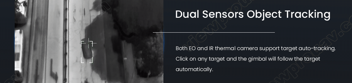 - Objecttracking met dubbele sensor: Volgt automatisch doelen in EO- of IR-modus.
