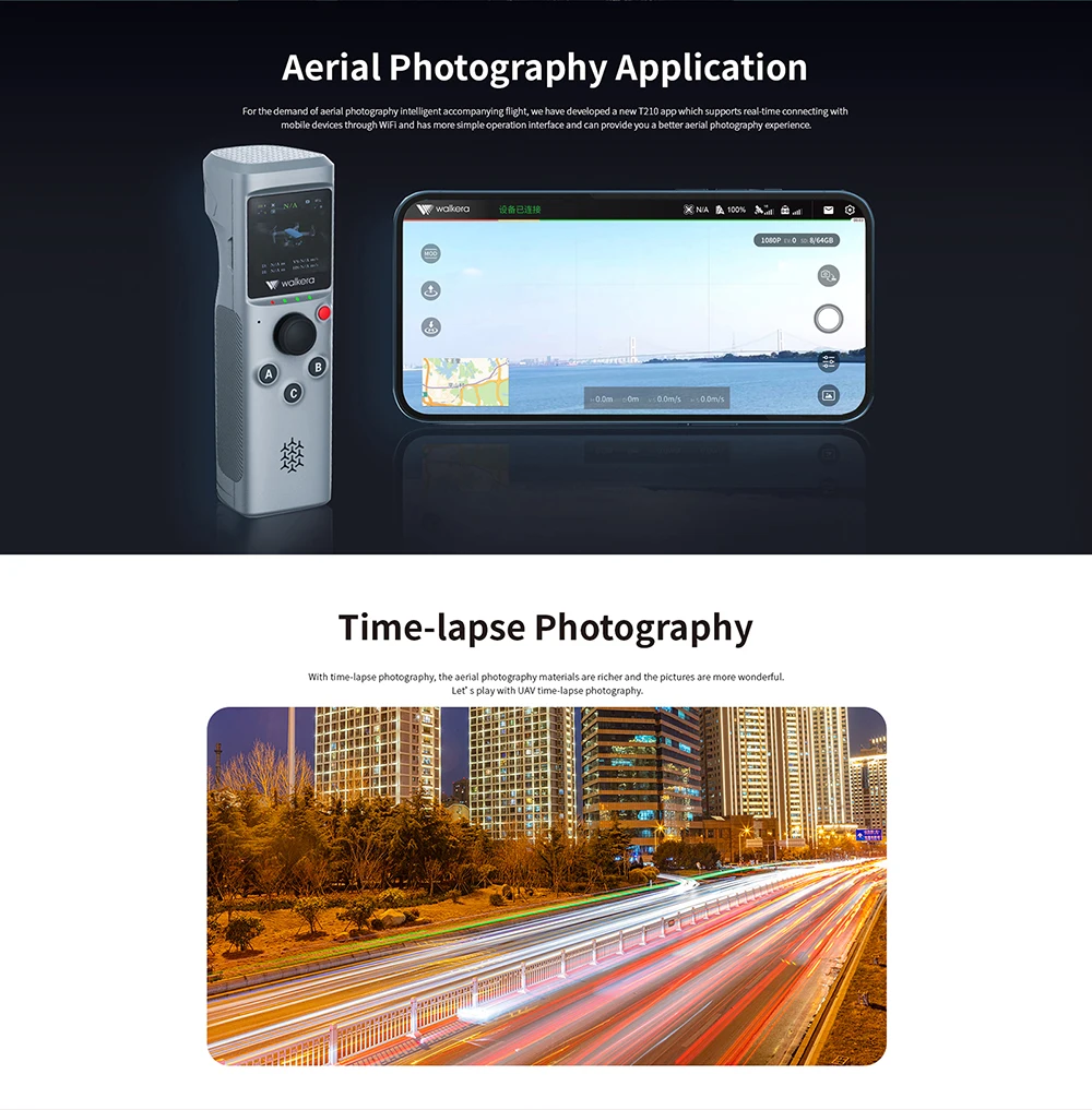 Walkera T210 FPV-drones met camera voor volwassenen 4K professionele lange afstand ondersteunt 4K-opnamen en H. 264-coderingsformaat uitvoer, en behoudt de meest realistische details. Slim begeleidende vlucht, somatosensorische spraakbesturing, 4K-camera, 31 minuten vliegtijd. Het lichtgewicht rompontwerp van de T210 integreert het gepersonaliseerde ontwerp van achtervolging, stem-somatosensorische controle en één worp om te vliegen. De maximale vliegtijd is maximaal 31 minuten, wat meer ervaring met luchtfotografie oplevert.