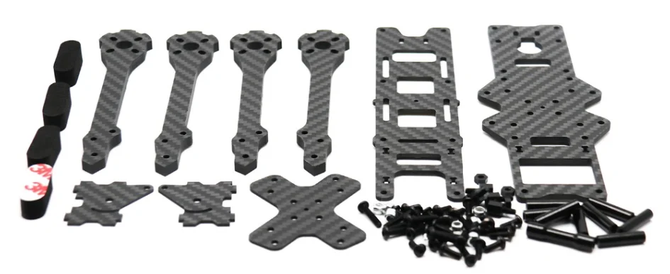 1x FPV Racing Drone Frame Kit zawiera: 1x Zestaw śrub żelaznych: M3*8mm-18szt, M3*14mm-12szt, M3 Srebrna nakrętka-8szt. 1x opakowanie z kolumną aluminiową: jasna czerń dystansowa dystansowa okrągła kolumna M3 * 28mm-1szt, jasna czerń M3 * 20mm-8szt. 1x pakiet kolumn izolacyjnych. 1x pakiet podnóżków EVA (wersja niestandardowa HV). 1x Osłona aparatu.(Losowa dostawa kolorów)