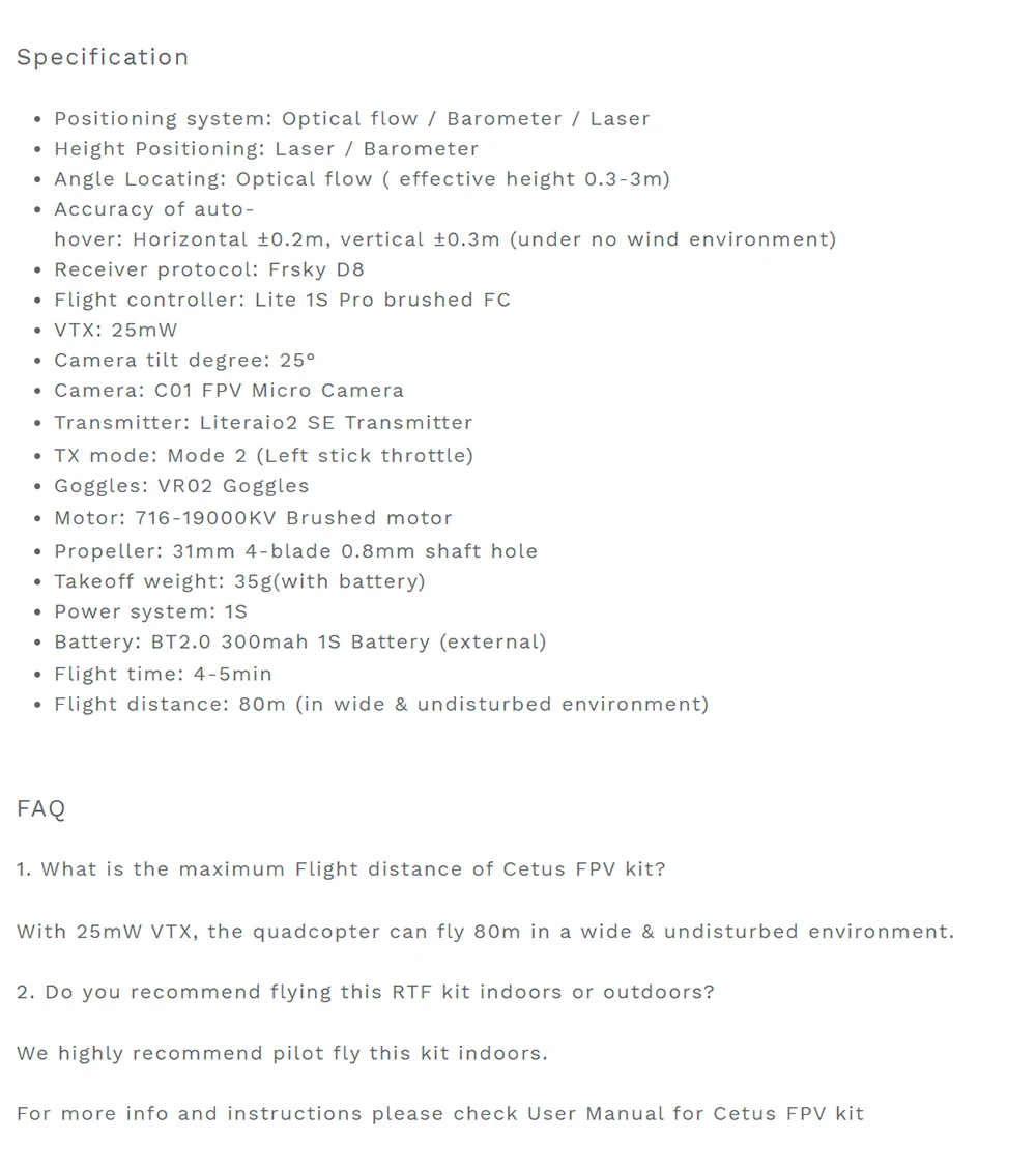 numer modelu: Zestaw Cetus Pro/Cetus FPV