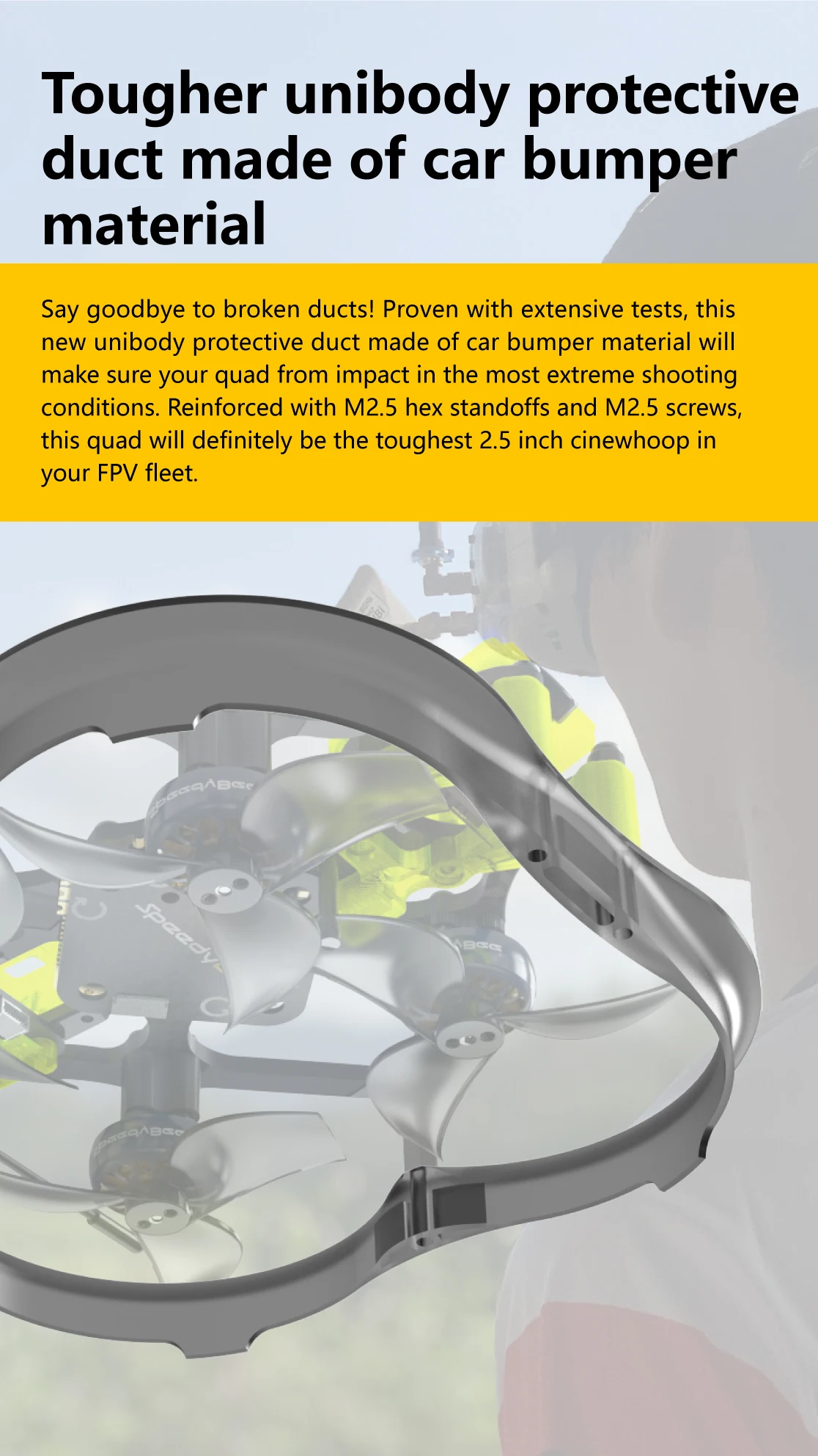 ● Rozstaw osi mniejszy o ponad 28% w porównaniu z innymi modelami 2. 5-calowa taśma cinewhoop