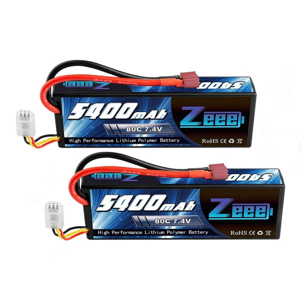 Zeee 5400mAh 80C 2S 7.4V Lipo Battery Hardcase with Deans Plug 2units RC Lipo Battery for RC Car Boat Truck Helicopter