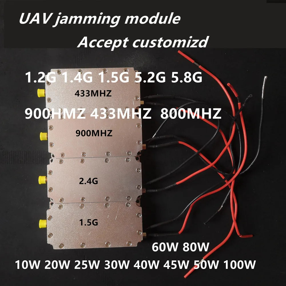 The 10W Anti Drone Module is a highly adaptable and powerful RF power amplifier designed for counter-drone applications across multiple frequency bands. This module offers reliable performance to effectively disrupt unauthorized drone activities, making it an essential tool for security and defense operations. Below are the detailed specifications for each available frequency band: