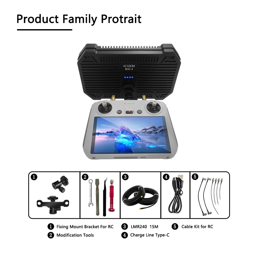 ROC-4 2.4G/5.8G 10W 8000mAh Dual-band Signal Booster Antenna Range Extender Remote for DJI Mavic 3, 3T, Matrix and Autel quadcopters