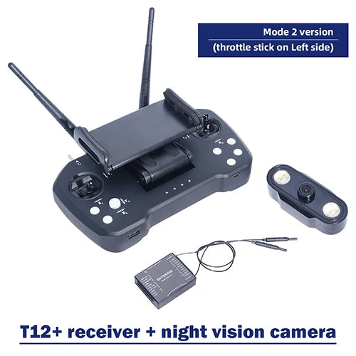SkyDroid currently has 3 link remote control products, respectively 1: M12PRO, the data transmission distance is 7KM; 2: M12L, the data transmission distance is 60KM; 3: T12, the digital transmission distance is 30KM, and the transmission distance is 20KM; M12PRO is an upgraded version of M12, M12L is a remote version of M12; The T12 has all the details of the M12PRO and adds digital image transfer with a camera and LED lighting. Reached the digital transmission 30KM, the picture passed 20KM. M12PRO upgrade for M12 is as follows 1: The rocker replaces the inlet potentiometer, which greatly increases the service life; 2: Replace the high quality, high life switch. 3: Replace the IP67 waterproof button. 4: Program upgrade to increase the stability of long-distance communication. 5: Upgrade the receiver casing, cancel the USB port and LED light port, increase the airtightness, and achieve IP64 waterproof level. 6: Improve the antenna structure and enhance the received signal. 7: The charging chip upgrades the 2A chip, the charging time of the remote controller is shortened, and the efficiency is higher. 8: Upgrade the remote control shell, the color is changed to black gray, more resistant to dirt. Replace the rubber paint with a bite surface to improve corrosion resistance. T12 Chinese manual download address: http://fuav.xin/wp-content/uploads/2019/01/T12 Chinese manual.pdf Yunzhuo FPV APP download: http://www.fuav.xin/download/skydroidfpv.apk Assistant software download: http://app.mi.com/details?id=com.shenyaocn.android.m11updater Ground station software download: http://app.mi.com/details?id=org.droidplanner.android.fuav&ref=search Video demo: T12 use demo: http://v.youku.com/v_show/id_XMzg4MzQ5MDI4OA==.html A mirror in the end: http://v.youku.com/v_show/id_XMzg4ODY5MTEwOA==.html A control 4 machine demo: http://v.youku.com/v_show/id_XMzk2NTM5MzEwOA==.html