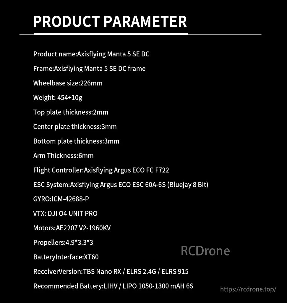 | Frame | Axisflying Manta 5 SE DC Frame |
