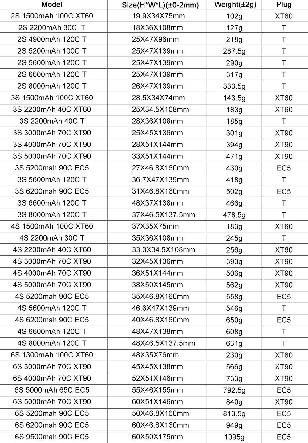 Features: • 4S configuration • Voltage: 14.8V • High-quality cells with long cycle life • EHL (Enhanced Heat Loss) design for efficient heat dissipation • EMAL (Efficient Multi-Cell Assembly) technology for optimized performance • DOUD4F (Durable Output Under Demand) design for reliable discharge • Capacity: up to 2600mAh or 2500mAh per cell