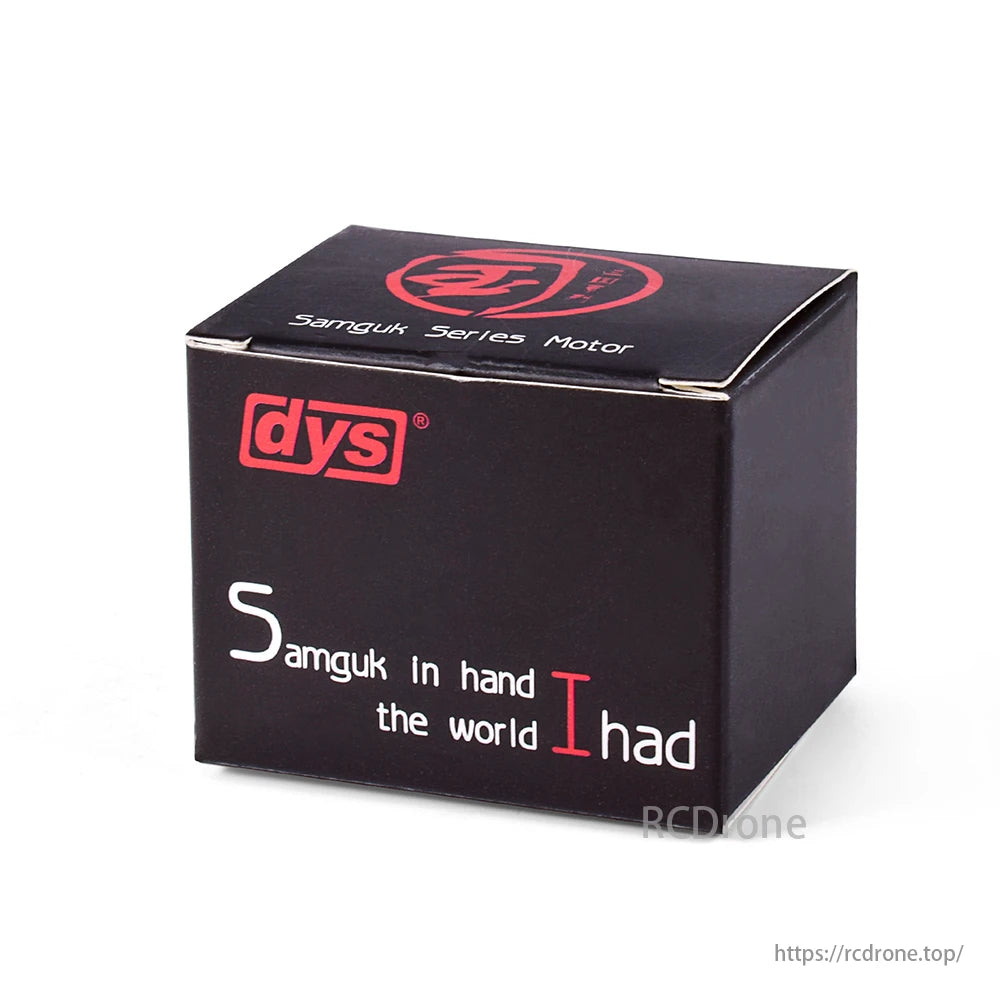 DYS Samguk Series Motor box. "Samguk in hand, the world I had" slogan featured prominently.
